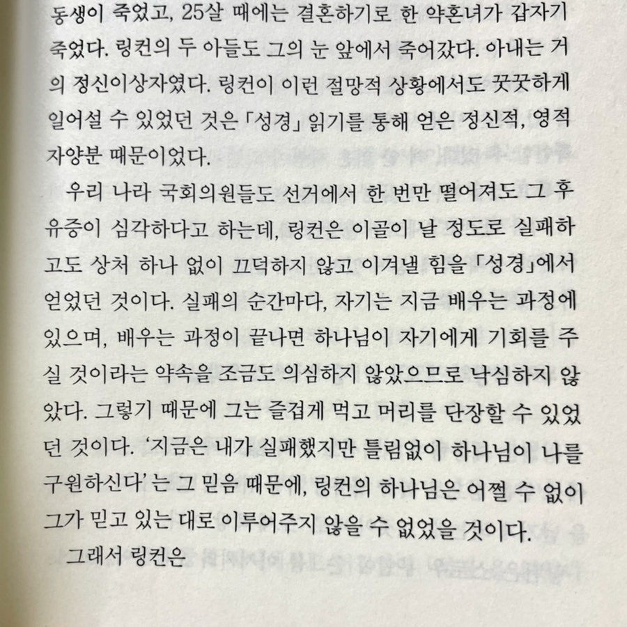 모든 인물들이 다 마음에 와닿았지만 특별히 링컨을 가장 감명 깊게 읽었던 것 같다.