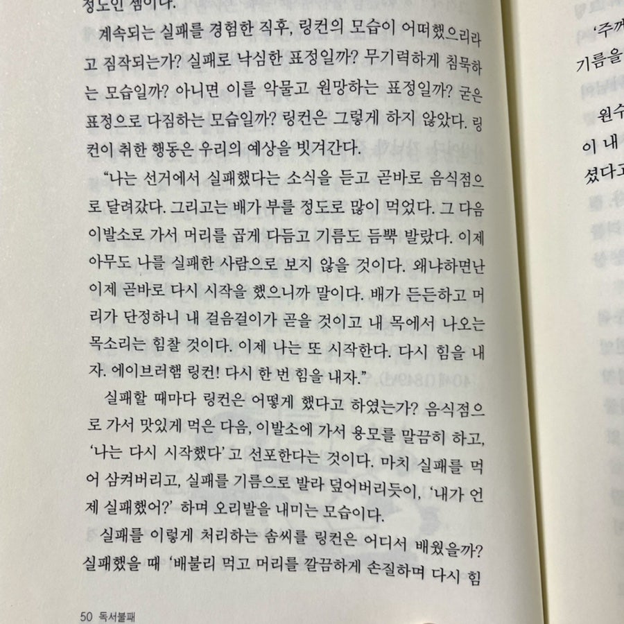 링컨은 실패의 순간마다 이렇게 고백하면서 또다시 출발한다.